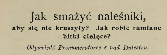 Poznajmy uwagi o smażeniu naleśników sprzed stu dziesięciu lat. Zamieścił je w roku 1911 jako odpowiedź czytelniczce (ale ją daleko los rzucił!) „Tygodnik Mód i Powieści”. Odpowiedź na drugie jej pytanie pomijam. Pisownia oryginału. Jest przepis na ciasto.