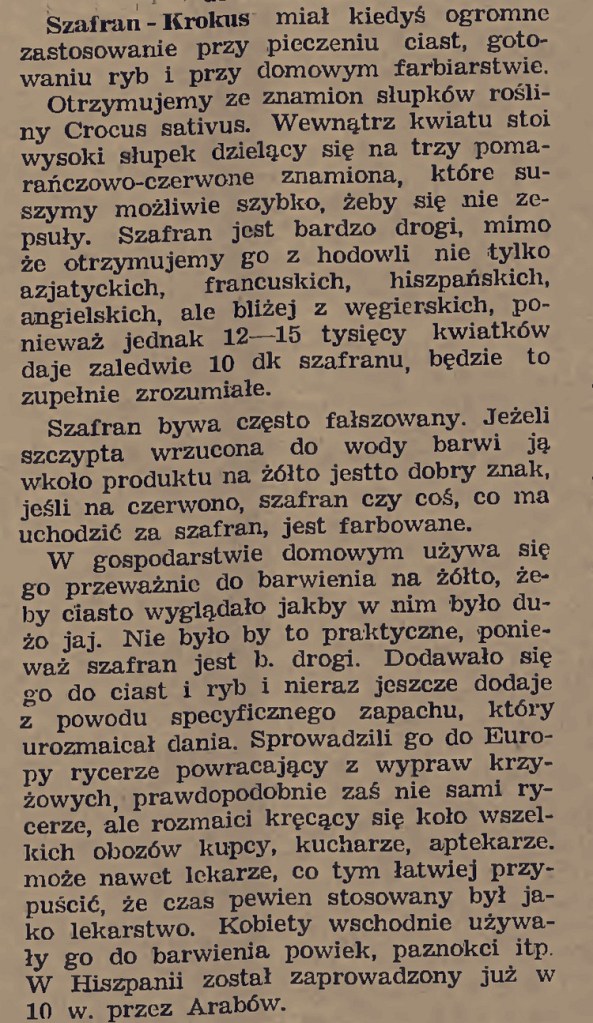 Aby lepiej się zapoznać z szafranem, przeczytajmy, co napisano o nim w zacnym tygodniku „Bluszcz” w roku 1938.