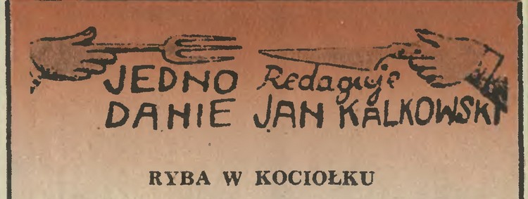 PODAJE: p. mgr Janina Jacyna ze Szczecina. Jej ryba „po murzyńsku” b. smakowała Czytelnikom. Czytelniczka AM z Poznania pisze: „Ryba była znakomita. Potrawę zrobiłam z atlantyckiej płastugi. Może częściej Jedno Danie podawać będzie takie egzotyki”. Więc dzisiaj – „ucha”.