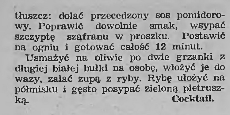 Na początek przedwojenne wariacje na temat pochodzącej z Marsylii słynnej zupy bouillabaise, które zamieścił tygodnik „Bluszcz” w roku 1927.