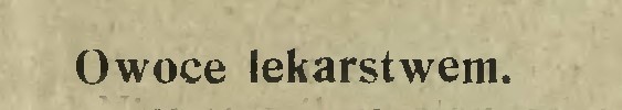 Niepomyślny stan zdrowia żyjącego obecnie pokolenia niepokoi umysły hygienistów i lekarzy. Starają się oni dociec przyczyny tak dziś rozpowszechnionej złej przemiany materji – źródła większości chorób trapiących ludzkość. Niewątpliwie są oni już na tropie, twierdząc, że źródło złego tkwi w nieodpowiedniem odżywianiu się: D-r. Ratyński rodak nasz i słynny hygienista–lekarz w Paryżu, twierdzi, że należałoby odwrócić ustalony obecnie system żywienia się, według którego na pierwszem miejscu stoi mięso, na drugiem jarzyny, a na trzeciem, jako niekonieczny dodatek – owoce. Zasada, którą on głosi swym pacjentom nakazuje, jako pokarm przedewszystkiem owoce, następnie jarzyny, a wreszcie, jako najmniej odpowiedni – mięso. W łączności z tem co mówi dr. Ratyński, znajduje się książka p. Henri Leclerc, który, opisując wszystkie owoce Francji, przytacza ich własności hygjeniczno-lecznicze: