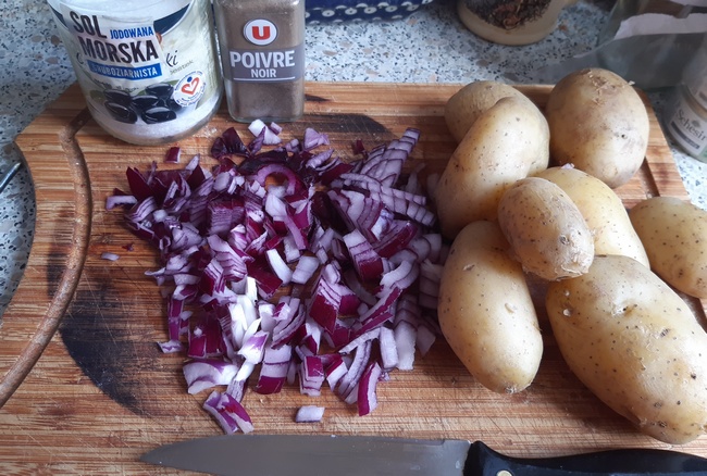 A ja usmażyłam Rösti po swojemu, z czerwoną cebulą, choć wzorując się na podanym w książce przepisie podstawowym.
