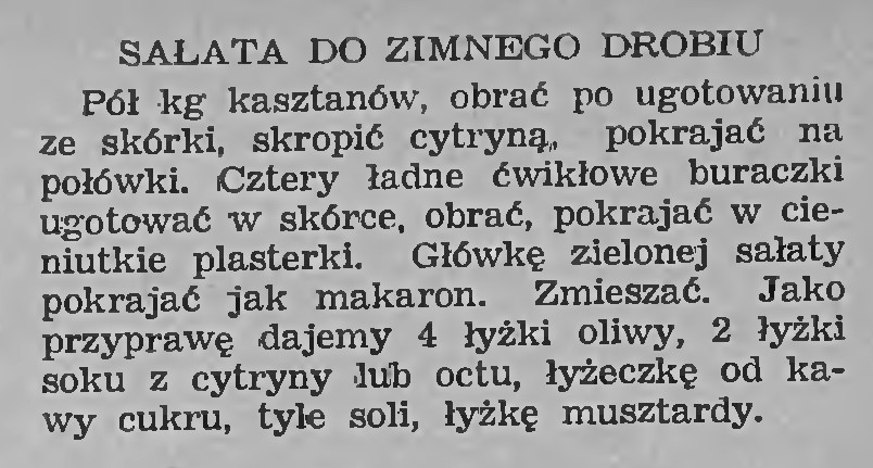 Ale druga już się nadaje do podania z drobiem. Łączy buraki z kasztanami. Ostatnio tego nie sprawdzałam, ale można było kupić kasztany już ugotowane. Przyśpieszą przyrządzenie sałatki.