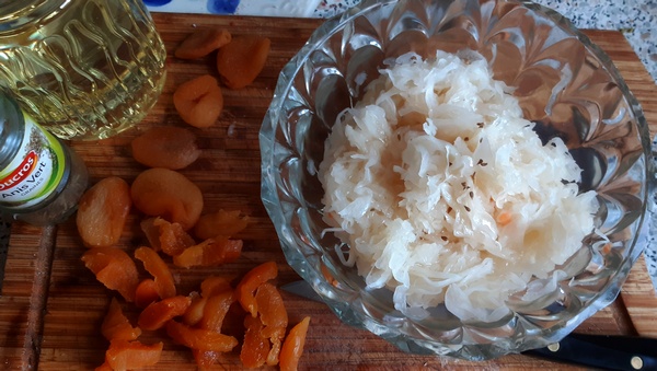 Surówka z kapusty kiszonej z suszonymi morelami po mojemu