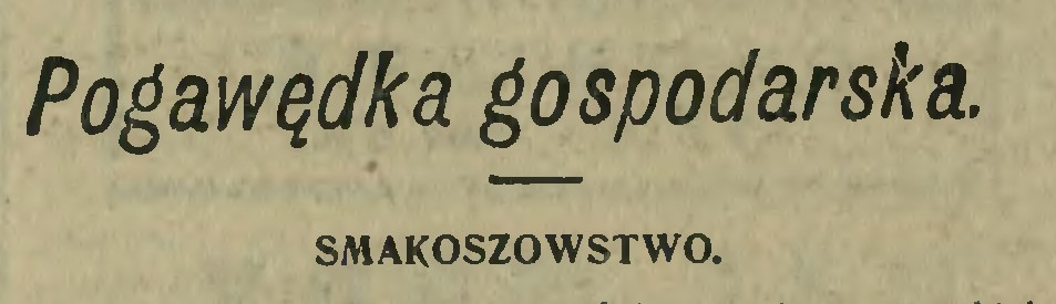 Nie mogę nikomu polecać próbowania takich dziwolągów, lecz moda studiowania kuchni i jadłospisów sama przez się jest modą ładną i pożyteczną. Panie, poświęcające jej część tych godzin, w których się nudzą, bo niepogoda, więc wyjść do kawiarni nie sposób, znajda miłe passe-temps. A pomysłowsze z nich, lubiące smacznie zjeść same lub mające mężów z tą wadą, może wynajdą jakie nowe, bardziej do naszych gustów zastosowane potrawy, w myśl aforyzmu, głoszącego, że jedna nowo wynaleziona potrawa więcej robi dla szczęścia ludzkości, niż najuczeńszy traktat filozoficzny.