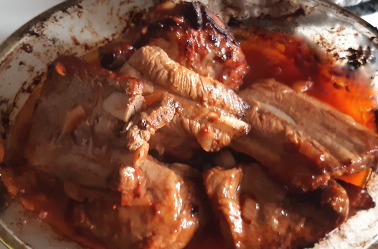 Niektórzy tylko pieką żeberka, bez duszenia, ale wolę to zrobić, aby mieć pewność, że całkiem zmiękną. Kto tylko piecze, może zbadać wypieczenie żeberek z pomocą specjalnego termometru. Żeberka będą mocno wypieczone, kiedy wskaże 75 –80 st. C.