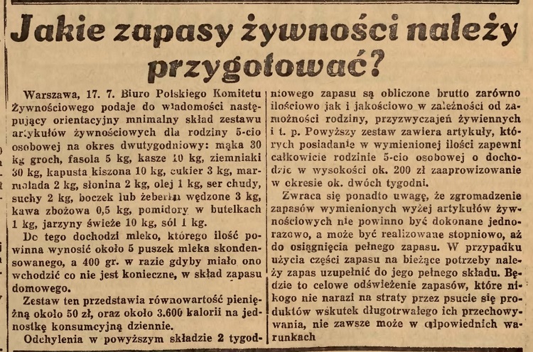 Polski Komitet Żywnościowy przewidział zapasy pozwalające rodzinie przetrzymać dwa tygodnie. Oblężenie Warszawy miało potrwać dłużej. A wojna pięć lat. Latem roku 1939 nikt w to nie wierzył.