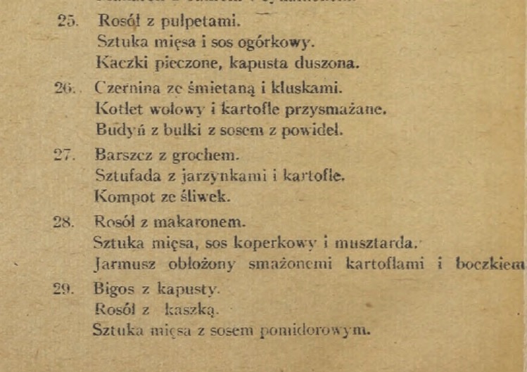 W jej dziele podstawowym, czyli „Skrzętnej gospodyni” znalazły się wtedy popularne i potrzebne przykłady obiadów na cały rok, podzielone na miesiące. Oto kilka tych dyspozycji z końcówki lutego.