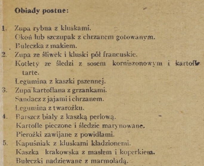 A także kilka obiadów postnych, czyli bezmięsnych.