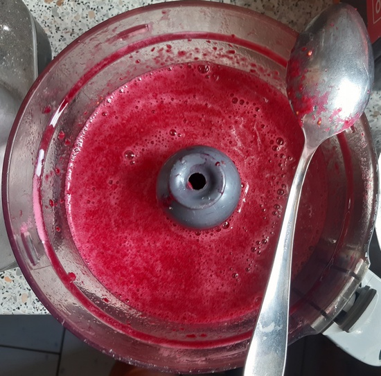 Wszystko to zmiksować z cukrem, doprawić octem owocowym oraz solą i pieprzem do smaku. Przed podaniem trzymać w lodówce, co najmniej pół godziny, ale lepiej dłużej.