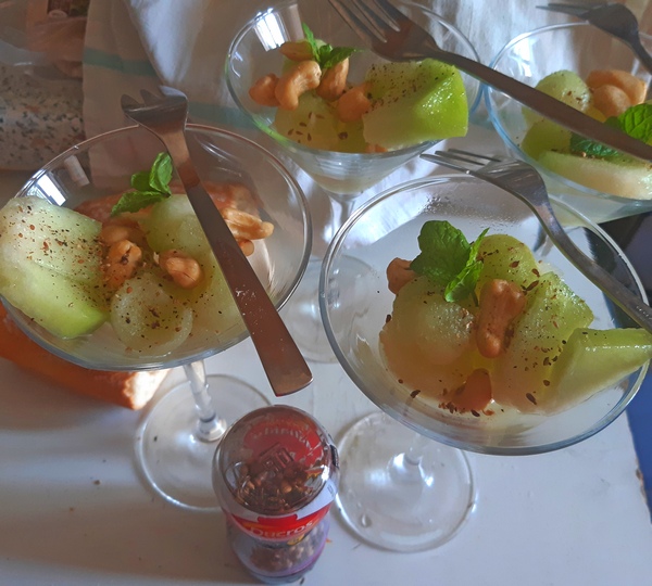 Kto chce, może go połączyć z innym gatunkiem – i miąższu pomarańczowym lub żółtym, a nawet z arbuzem. Skropienie go anyżowym w smaku alkoholem z południa Francji przywoła niektórym wspomnienia z minionych wakacji. Tę przystawkę wykonają nawet kuchenni analfabeci, tak jest prosta.