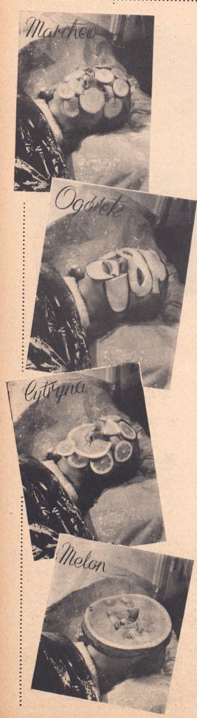 Na zakończenie ciekawostka z zupełnie innej beczki. Nie z działki kulinarnej, ale z kosmetycznej. Jak wykorzystać warzywa do poprawienia urody. Przed wojną takie naturalne maseczki były już dobrze znane. Tym razem popularyzuje je pismo „Ilustracja Polska”, już w roku 1939. Miałam się ograniczyć tylko do melona, ale… chyba by było szkoda.