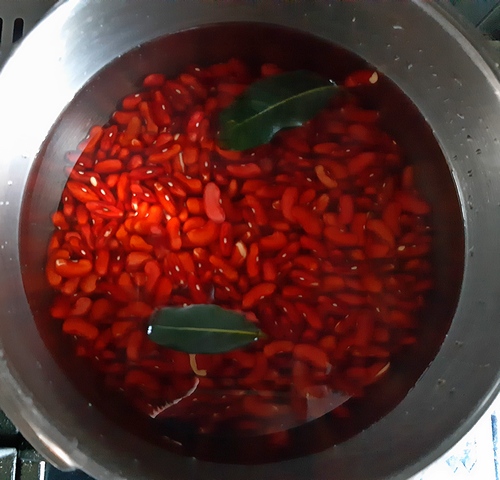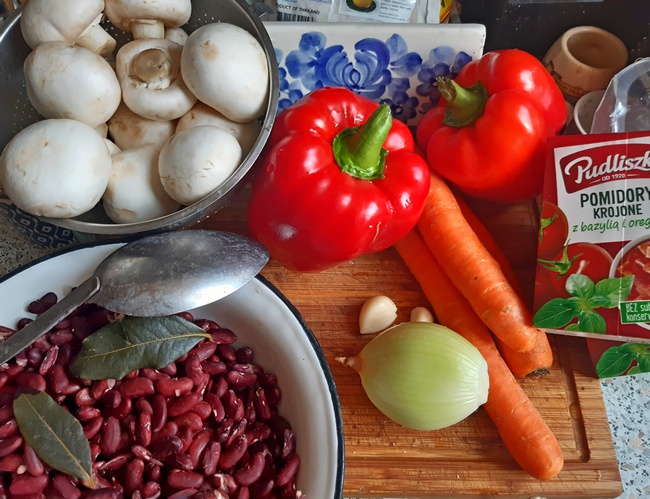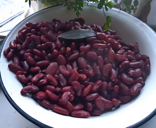 Ja na bazarze pod Halą Mirowską, obok świeżych warzyw, zaopatrzyłam się w fasolę czerwoną. Suszoną, przed ugotowaniem więc najpierw ją namoczyłam.