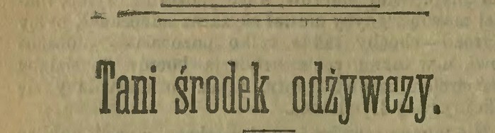 Jest w naszej mocy rozpowszechnić w kraju pożywienie, które ma pierwszorzędne zalety odżywcze i hygieniczne, a zarazem wielką cnotę… taniości. Jest to czarna fasola brazylijska, podstawowy pokarm 17-miljonów mieszkańców Brazylji. Jest ona tam daleko więcej rozpowszechniona, niż ziemniaki, chociaż te właściwie ztamtąd [tak pisano!] i z Peru są rodem. Na stole cesarskim Don Pedra, ostatniego monarchy amerykańskiego, nie brakowało nigdy czarnej fasoli, jako potrawy narodowej, tak przy najuroczystszych i najświetniejszych ucztach, jak też w dzień powszedni. I dotąd dwa razy dziennie jest ona podstawowem pożywieniem (piece de résistance) w najzamożniejszych i w najuboższych rodzinach. W wielu miejscach bywa nawet pokarmem wyłącznym, gdy chleb jest prawdziwą rzadkością. Gdyby tam była powstała Modlitwa Pańska „Ojcze nasz”, najniezawodniej inaczej brzmiałby jej ustęp środkowy.