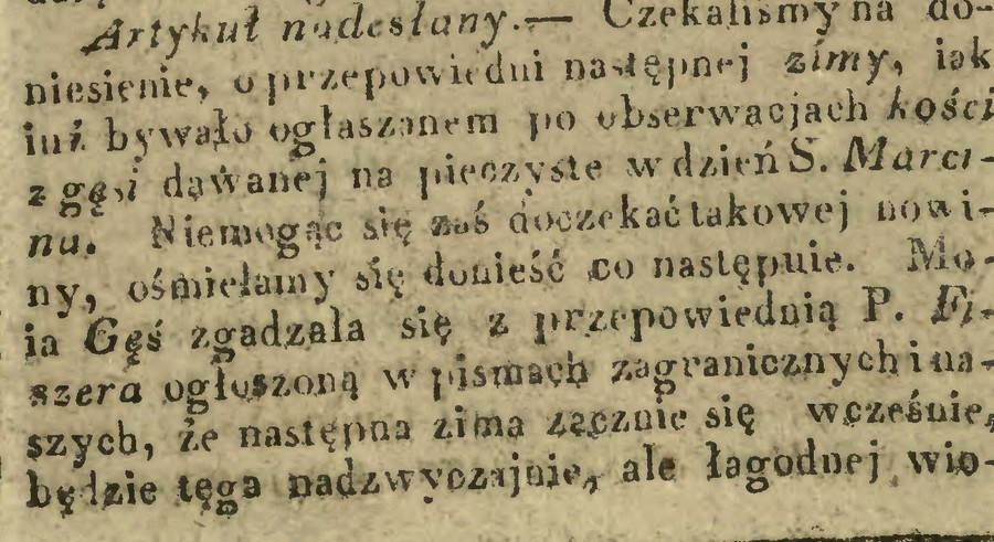 Najczęściej jemy tego dużego ptaka w dzień świętego Marcina. Tak nakazuje staropolska tradycja. Przed nadchodzącą zimą i zimowym postem sięgano po potrawy tłuste i treściwe. Nie tylko obficie napełniano żołądki. Z kości jedzonej gęsi wróżono, jaka będzie nadchodząca zima. Jakkolwiek traktowano to z przymrużeniem oka, bardziej jako zabawę niż prognozę pogody. Co opisywał redaktor „Kuriera Warszawskiego” w roku 1826.