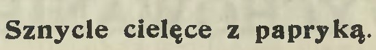 Cielęcinę od ćwiartki pokrajać w plastry, dobrze zbić, osolić, otoczyć w mące, a potem w jajku rozbitem i tartej bułeczce, i na maśle rozpalonem lekko z obydwóch stron obrumienić. Złożyć je w rondel, zalać pół kwartą śmietany, dodać do smaku papryki i przykrywszy pokrywą, udusić na wolnym ogniu do miękkości.