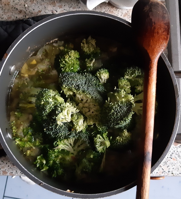 Gotować zupę przez 15–20 minut, aż brokuły zmiękną.