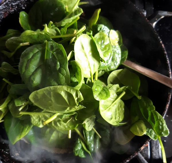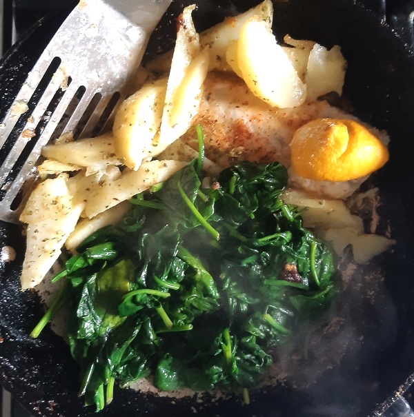 Ja ostatnio sporządziłam szybki domowy obiad ze szpinakiem. Z rybą. Takie połączenie szpinaku jest klasyczne i dobrze smakuje. U mnie rybą był karmazyn o zwartym mięsie, ale może być dorsz, może być sandacz, może być łosoś. Co kto ma i lubi.