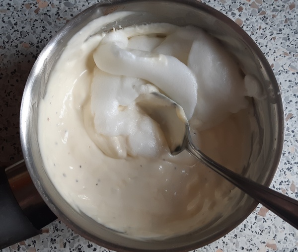 W wazie należy rozbić dwa żółtka, łyżkę śmietanki, masła i parę łyżeczek słodkiej śmietanki (w braku śmietanki wziąć trzecie żółtko) wlać parę łyżek zupy rozbić dobrze, aby się żółtka nie warzyły, wylać resztę i zupy i podać z grzaneczkami ostremi z serem (djabletkami) lub jakiemiś lekkiemi pasztecikami, najlepiej we francuskiem cieście.