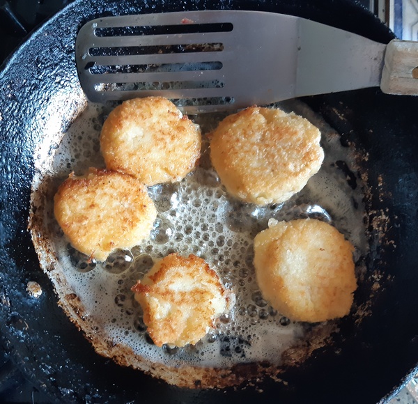Bardzo smacznym wyrobem z takich starych ziemniaków będą francuskie ziemniaki nazywane z polska dofinkami, czyli pommes dauphines.  Ta dziewiętnastowieczna recepta wymaga nieco pracy ­­–­ choć jest łatwa do przyrządzenia; naprawdę, spróbujcie! Klasycznie łączy purée ziemniaczane z ciastem parzonym (jak na ptysie). Z tego wyrabia się najczęściej kulki i smaży w głębokim tłuszczu lub wypieka. Moja wersja jest uproszczona, nie wymaga ciasta ptysiowego. Tak smażone kulki, placuszki lub paluszki może nie są tak delikatne i wyrośnięte, ale równie smaczne. Mogą być dodatkiem do potraw, ale i potrawą samodzielną, podawaną z mlekiem –­ słodkim lub kwaśnym – lub wyrobami typu kefir, maślanka, jogurt.
