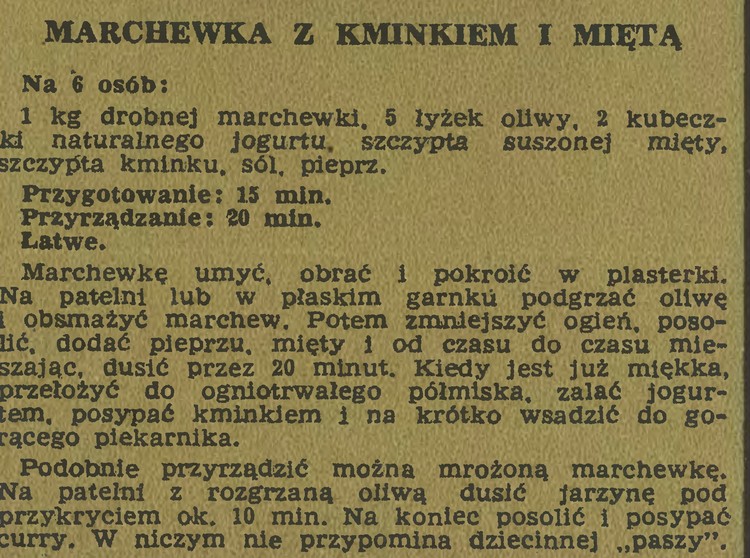 Tym, którzy mają dość słodyczy w życiu, podrzucam inny oryginalny przepis na przyrządzenie marchewki. Podał go „Przekrój” w roku 1990.