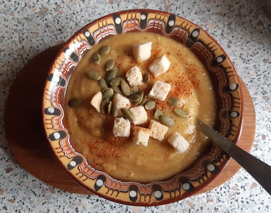 do podania: grzanki, pestki dyni lub słonecznika