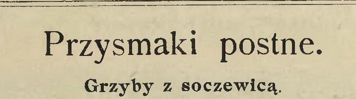 Przykłady zastosowania soczewicy w kuchni postnej z roku 1912, z „Tygodnika Mód i Powieści”, szacownego pisma o korzeniach sięgających połowu wieku XIX.