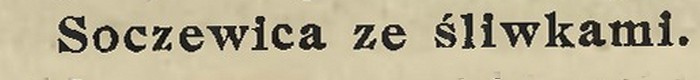 Śliwki suszone oczyścić, osłodzić trochę i ugotować; gdy jeszcze niezupełnie miękkie dołożyć je do gotującej się soczewicy i razem gotować do miękkości. Podaje się do tego chleb.