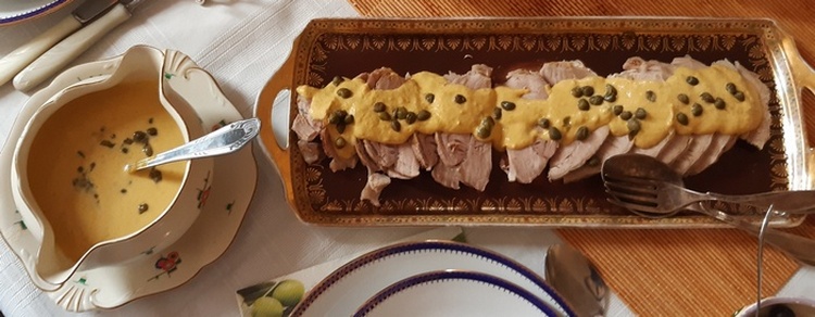 Klasyką i zawsze mocnym punktem zimnego bufetu jest włoska cielęcina podawana z sosem tuńczykowym. Czyli vitello tonnato. W moim blogu można znaleźć stosowny i dokładny przepis, przypomnę go w skróconej postaci.