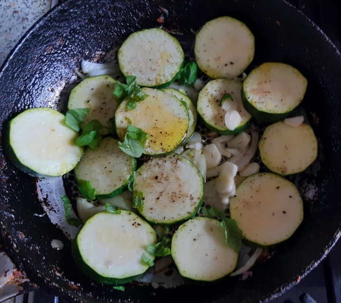 Kto chce, może podać ją z ugotowanym makaronem (resztki, resztki!), odgrzanym z cebulką i plasterkami, a jakże, cukinii).