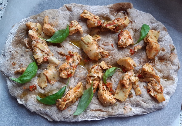 Skrapiamy ciasto pinsy oliwą spod karczochów, rozkładamy je na cieście, zapiekamy i podajemy ze świeżymi ziołami. Ręczę, że nikt się im nie oprze.