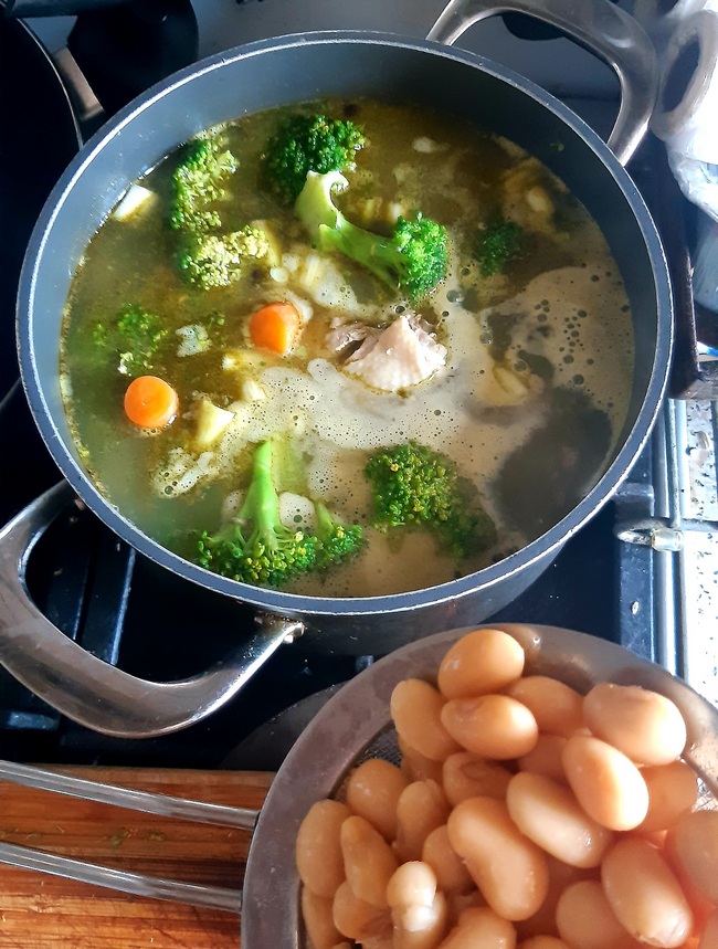 Pierwszą z moich propozycji w tym duchu będzie pożywna zupa z brokuła i fasoli. Włoskiego smaku przydają jej fasola i dodatki. Tą fasolą jest puszkowa cannelini. Kremowa w kolorze i smaku, łagodna. Bogata w białko, błonnik, witaminy grupy B, A i PP, oraz lecytynę korzystnie wpływającą na pamięć i koncentrację. Jest źródłem żelaza i magnezu.Kupimy ją ugotowaną, w puszce.