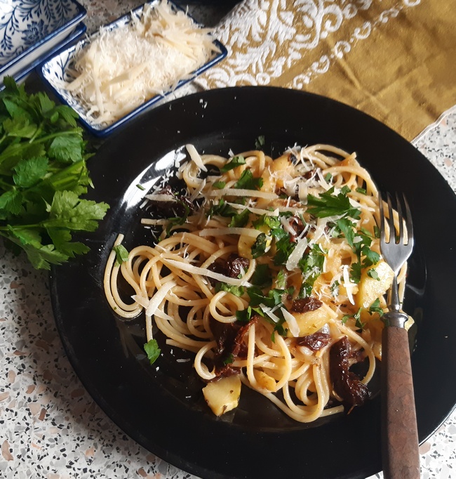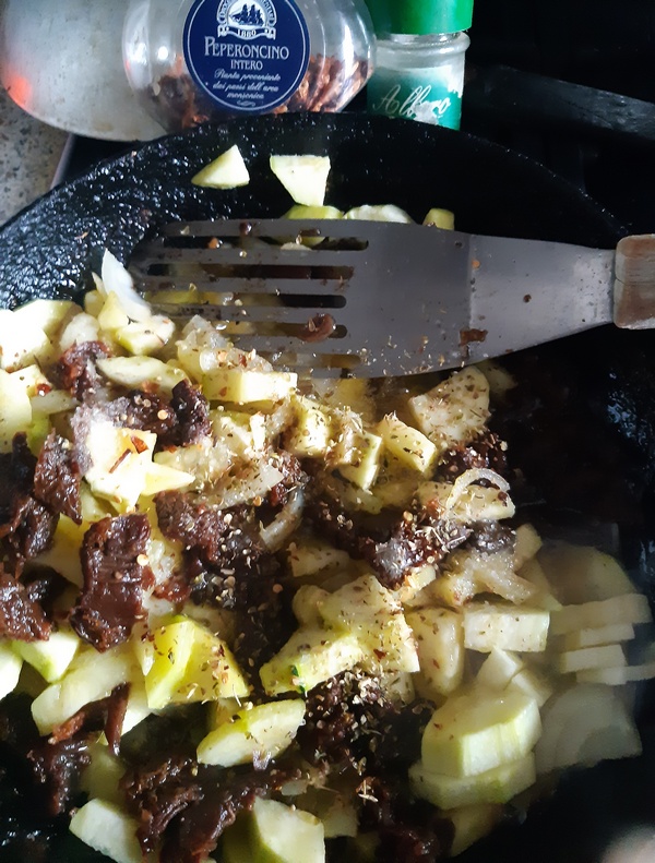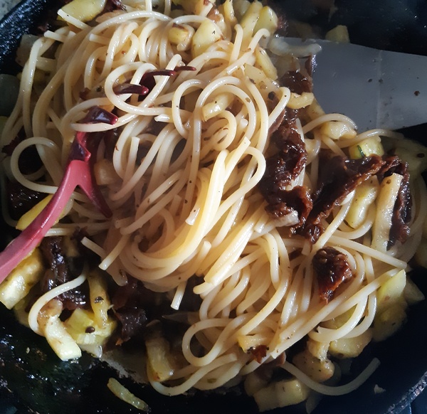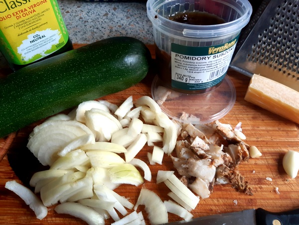 Szybkie spaghetti z cukinią i suszonymi pomidorami po mojemu