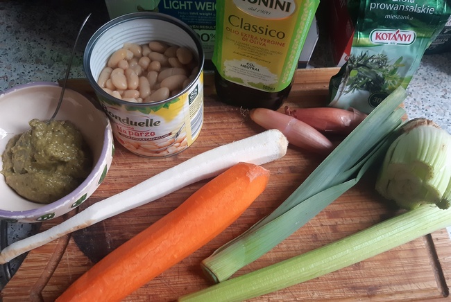 Taka grochówka ma inny smak niż tradycyjna. Podajmy do niej grzanki lub świeże pieczywo. Podobnie nowego smaku nabierze zupa z fasoli. Gdy weźmiemy tę z puszki, ugotujemy ją prawie błyskawicznie! Jej smaku przyda włoskie pesto genovese: pasta o smaku bazylii. Jej odmiana jest czerwone pesto z Sycylii z dodatkiem pomidorów, także można go użyć.