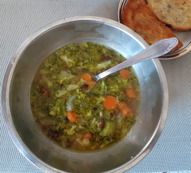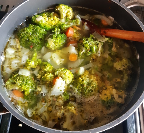 Kolejna zupa jest tradycyjną zupą śmieciową, do brokuła (a może być to i kalafior) dorzucamy co tam mamy z warzyw pod ręką. Doprawiamy jak lubimy, gotujemy nie za długo, aby brokuł się nie rozpaćkał. No, chyba że tak lubimy!